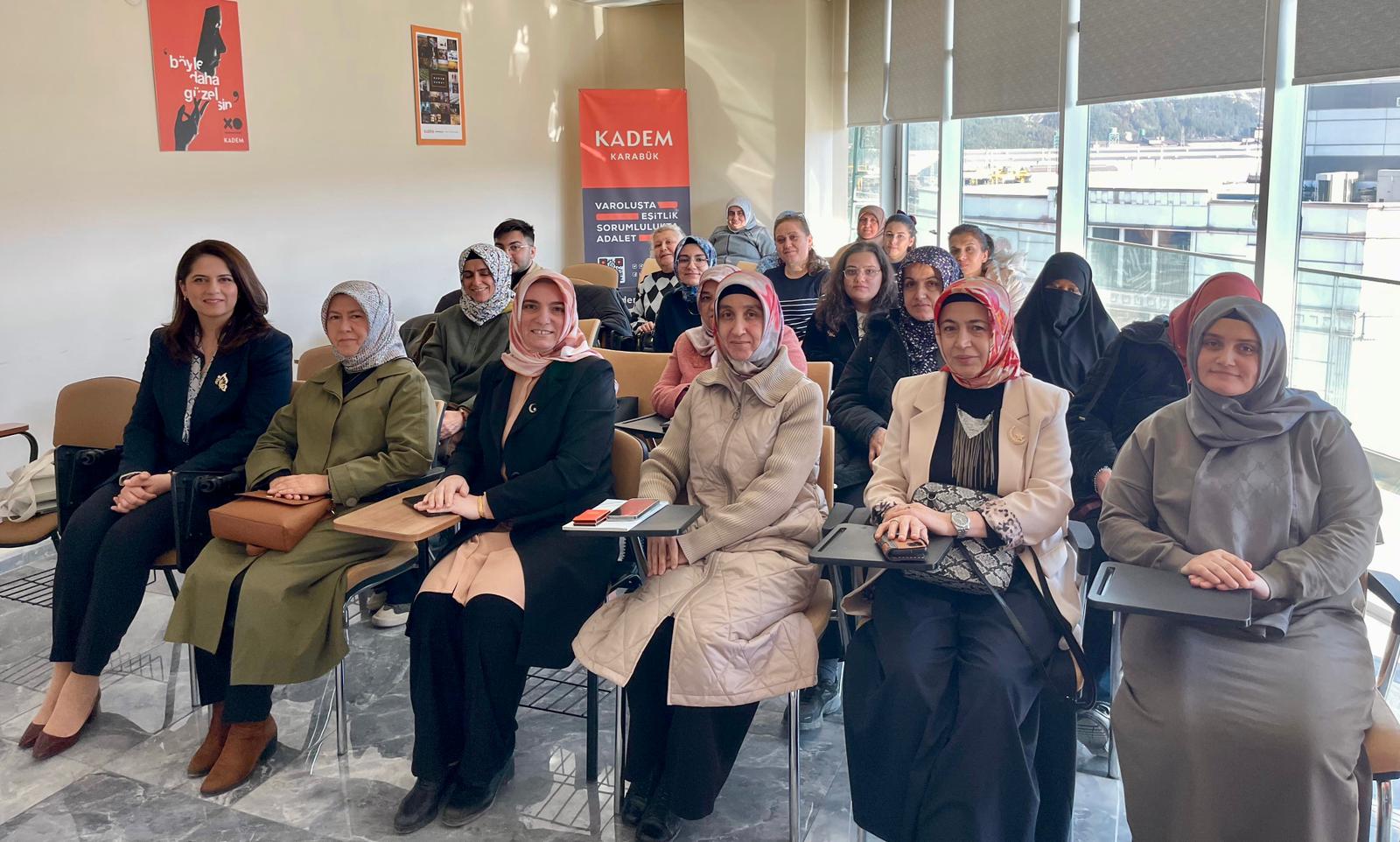 KADEM Karabük İl Temsilciliğinde gerçekleştirilen programda konuşan Dr. Öğretim Üyesi Hülya Özçağlar Eroğlu, kadınların dünya nüfusunun yarısını oluşturmasına rağmen eğitim, ekonomi, siyaset ve karar alma mekanizmalarında hâlâ eşit fırsatlara ve temsile tam olarak ulaşamadığını söyledi.