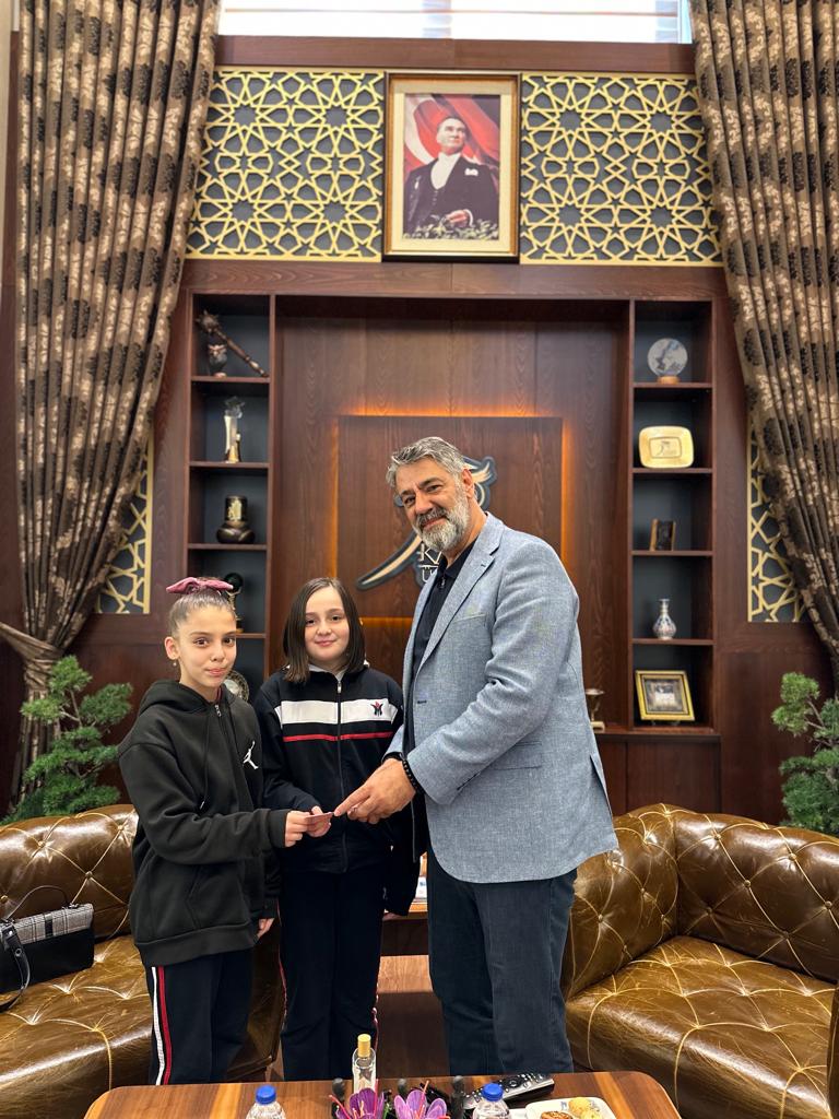 6.sınıf öğrencileri, Özel Karabük My Kolej’in Değerler Eğitimi Kulübü Öğretmenleri Elif Leyla ve Eli Ayşe Solmaz nezaretinde Karabük Üniversitesi Rektörü Prof. Dr. Refik Polat’ı ziyaret etti. Öğretmen ve öğrencileri makamında..