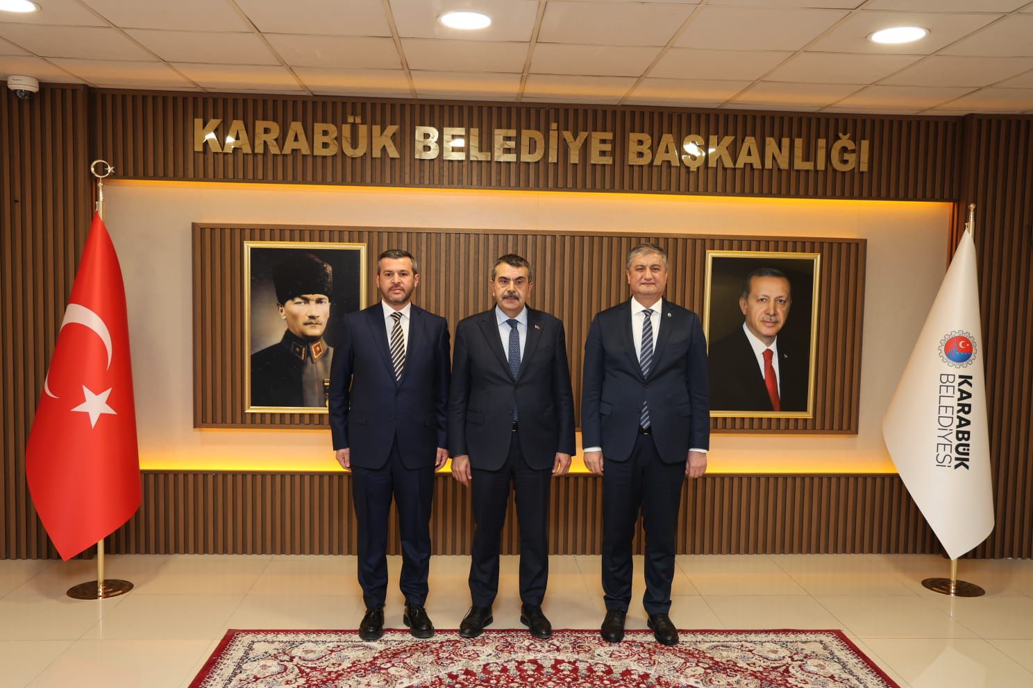 Başkanlık makamında gerçekleşen ziyarette Belediye Başkanımız Özkan Çetinkaya, ziyaretten duyduğu memnuniyeti dile getirerek, Bakan Tekin’e kente dair hizmet ve projeler hakkında bilgi sundu. Milli Eğitim Bakanı Yusuf Tekin’e, Karabük Valisi Mustafa Yavuz eşlik etti.