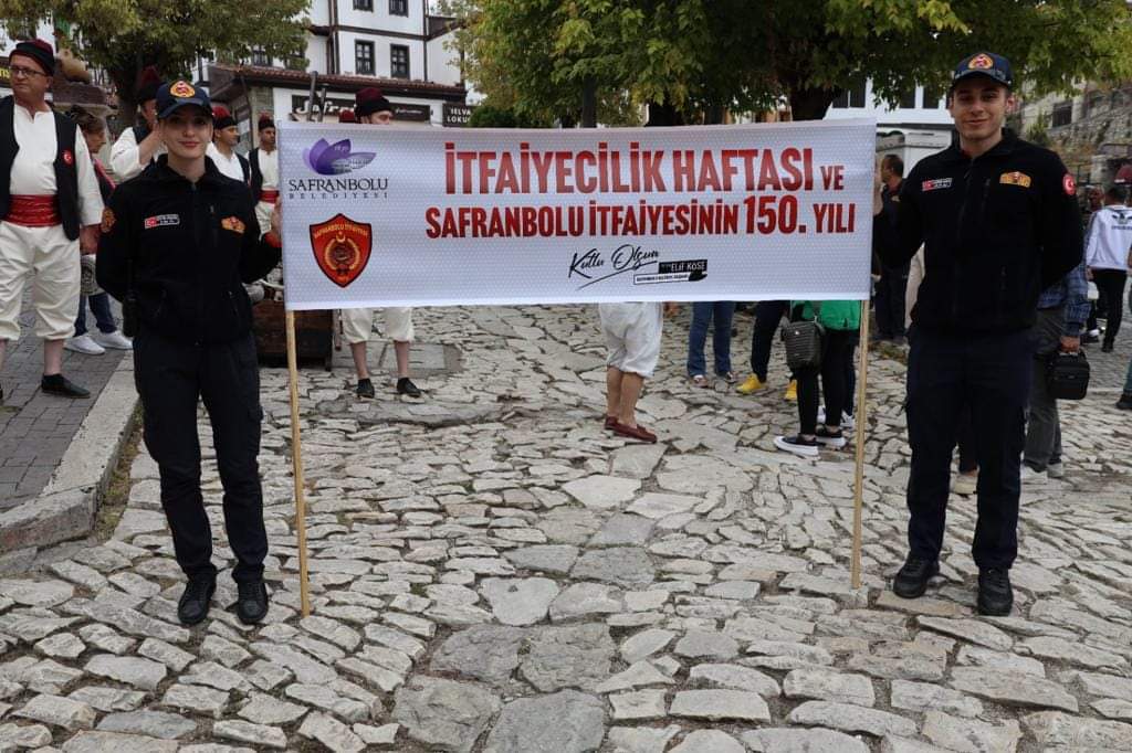 İtfaiyecilik haftası ve Safranbolu Belediyesi İtfaiye Müdürlüğü’nün 150.nci kuruluş yıldönümü dolayısı ile Safranbolu Belediyesi İtfaiyec Müdürü Mehmet Gökçü tarafından hazırlanan tarihi tulumbacı kıyafetlerini giyen itfaiye erleri tarihi çarşı sokaklarında yürüdü.